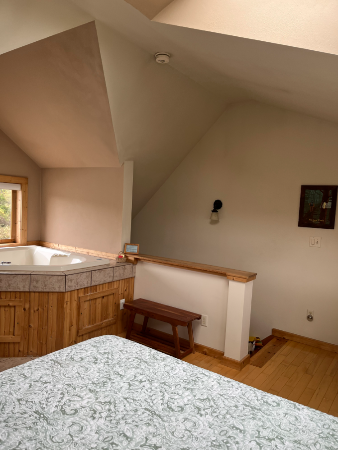 - Queen Bed on Second Floor (view the night sky through our expansive skylight)